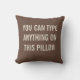 Pas deze kussen aan met elke tekst. De achtergrondkleur is een verouderde bruine kleur. De crèmekleurige tekst is zo onderdrukt dat hij op de bruine achtergrond lijkt te zijn geschilderd. U kunt het pijnlijke verwijderen door het aangepaste afbeelding hieronder te verwijderen. Tik op de knop Aanpassen om het lettertype of de kleur te wijzigen.