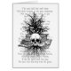 Een fabelachtige digitale collage met schedel, een roerige boom, boeken en een gedicht.