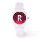 GEDRUKTE FUCHSIA ROZE RUBY EDELSTEEN MONOGRAM HORLOGE