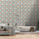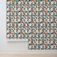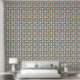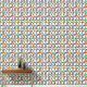 Voeg een pop kleur toe aan je wanden met dit fantastische retro mid century behang. Het heeft de heldere en gewaagde kleuren turquoise blauw, twee tinten sinaasappel, goud, tan en zwart.