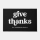 Deze eenvoudige en boho deurmat zegt "geef bedankt" in retro witte typografie op een donkerzwarte achtergrond, en is de perfecte manier om uw huis te versieren voor uw Thanksgiving of Friendsgiving-dinergasten.