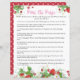Een beszoete baby is onderweg! Dit baby shower "Pass the Prize" kaartspel bevat aardbeien, witte bloemen en groen. Het wordt aangevuld met een leuke handschriftstijl typografie en een zoete aardbeizaden achterkant. U kunt alle tekst- en afbeeldingsplaatdetails aanpassen aan uw specifieke behoeften. Neem contact op met de ontwerper voor eventuele bijpassende producten die niet beschikbaar zijn.