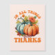Omarm de geest van dankbaarheid met dit hartverwarmende "In All Things Give Bedankt" wenskaart, met levendige pompoenen, herfstbloemen en seizoensgebladerte in een rijk herfst palet. Ideaal voor Thanksgiving bijeenkomsten, herfst festivals, familiefeesten, of gewoon het toevoegen van een vleugje seizoenswarmte. Dit ontwerp spreekt iedereen aan die de herfsttradities koestert, van huismakers die herfst versieren tot leerkrachten, gezinnen en feestelijke gastheren.