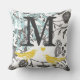 Geel grijs en (Optionele aanraking van Aqua) Trendy modern Tortelduifjes Floral Pattern gepersonaliseerd monogram. Chinoiserie, Grandmillennial, Cottage Chic, Cottcore, Farmhouse decor
