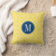 Geel en Navy Quatrefoil Pattern Custom Monogram Kussen