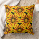 Het originele bloemenpatroon op dit levendige kussen is een madeliefje. De stroperige bloemblaadjes die het gele midden van de bloem omringen vallen op en lichten elke doffe hoek op op een bank of bed op. De zwarte achtergrond maakt de kleuren echt pop. De achterkant van het kussen heeft hetzelfde madeliefje ontwerp maar de madeliefjes zijn gelijkmatiger gespreid.