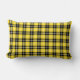 Vierkantjes gooien kussen met het familietrantenpatroon voor Clan Barclay. pleisterkleding uit 1842, helder geel, zwart en wit. Het rechthoekige lendensteunkussen is ook beschikbaar.