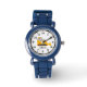 Een echt schattige illustratie van een geel en zwart bulldozer kinderhorloge. Alle teksten kunnen worden gewijzigd.