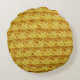 Geel gebreide stof: gestreepte textuur. rond kussen