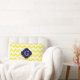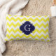 Geel groots Chevron Navy Blue Quatrefoil Monogram Kussen