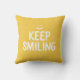 Een kleurrijk motivatie citaat werpen kussen met een vrolijk tekstontwerp dat houdt het glimlachen in geel en wit.
