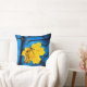 Geel leder op blauw kussen