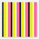 Verticale gele en roze strepen gedeeld door een dunne lijn van zwarte en witte strepen lijnen oppervlaktepatroon ontwerp