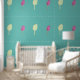 Ontworpen met elegante bloemmotief abstracte achtergrond in geel en roze in aangepaste blauwgroen blauwe kleur! Groot voor hoofdslaapkamerdecor, baby kwekerij, kinder ruimten, woonkamers, keuken en badkamerdecor! U kunt de achtergrondkleur wijzigen als u wilt!