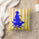 Geel Wit Streep Kind Hond Blauw Silhouet Kussen