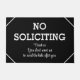 Stuur advocaten die met dit No Soliciting grappige citaatmodel lopen. Het citaat is "GEEN SOLICITING. Vertrouw ons. Je wilt niet dat we de kinderen naar je sturen." Witte typografie. Zwarte achtergrond. U kunt het ontwerphulpmiddel personaliseren en gebruiken om kleuren, doopvonten of zelfs de formulering te veranderen.