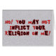 Houd de bijbelslangen van u af met woorden in rood en zwart of wit: "Nee, je mag je religie NIET op mij toepassen."