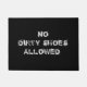 No Dirty Shoes Toegestaan: Krijg hun aandacht met een grappige boodschap. Of personaliseer je met je eigen boodschap. Zwarte achtergrond met witte tekst.