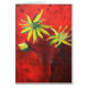 Gele bloemen rode kunst schilderij.