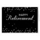 Een mooie boodschap omringd door zilveren enkels, helemaal zwart. Een zeer elegante felicitatiekaart voor een man of een vrouw met hun pensionering. Zeg hen dat je trots op hen bent en wens hen het beste.
