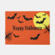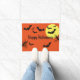 Halloween deurmat in sinaasappel met vleermuizen en maandruk. Pas deze mat aan of koop zoals nu.