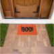 Halloween deurmat getoond met een spooky Boo! druk op een oranje achtergrond. Pas deze mat aan of koop zoals nu.