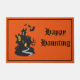 Deurmat afgebeeld met een oranje achtergrond en een Halloween spookhuis print. Pas deze mat aan of koop zoals het is.