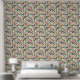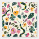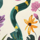 Dit kunstwerk beschikt over een grillige en betoverende tuinscène, met een verscheidenheid aan levendige bloemen, bladeren en speelse elementen tegen een zachte crème achtergrond. De compositie is gevuld met weelderig groen, bloeiende bloemen in roze, geel en paars, en af en toe het uiterlijk van een slang weven door het gebladerte. Het ontwerp combineert elementen van natuur met een vleugje fantasie en creëert een levendige en fantasierijke sfeer. Het gebruik van rijke, verzadigde kleuren en dynamische vormen draagt bij aan het gevoel van beweging en vitaliteit in de scène.