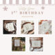 Vier de grote dag van je kleintje met deze gekke eerste verjaardagsuitnodiging van de gans, met een lief trio van grillige ganzen omringd door zachte witte bloemen, een verjaardagsgeschenk pet en pastel geschenkdozen. De gedempte groen gestreepte achtergrond voegt een frisse, minimalistische touch toe terwijl de dingen speels rustiek blijven. Ideaal voor cottagecore, coquette of storybook-thema babymeisje verjaardagen. Pas de bewerkbare tekst aan uw partijgegevens aan.