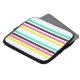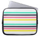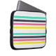 Een levendig patroon van horizontale strepen in verschillende kleuren zoals blauwgroen, roze, geel en zwart versieren de laptophoes. Het ontwerp is modern en in het oog springend en voegt een leuke en speelse touch toe aan uw technische accessoires.