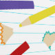 Een leuke illustratie van gekleurde potloden en hun potloodschaafsel. Een handgetekend ontwerp ideaal voor iedereen die van tekenen en creëer kunst houdt. Een ideaal ontwerp voor schoolkinderen, docenten, kinder slaapkamerinrichting en gepersonaliseerde geschenken.