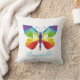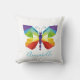 gepersonaliseerde gooi kussen voor je favoriete vlinder. Een eenvoudige, maar elegante, geschilderde vlinder, in levendige tinten van de regenboog. De voorzijde van de kussen heeft een grote gecentreerde vlinder, met elke naam die hieronder scripted is. De achterkant van de kussen heeft een ontwerp van verspreide kleinere geverfde vlinders.