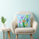 Gooi kussen met mijn ontwerp van zes vlinders in paarse, groene, blauwe, oranje, roze en gele blades van gras onder een blauwe hemel met witte wolken.