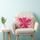 Het vrolijke originele digitale schilderij dat op dit kussen staat, heeft een grote grote hete roze boog (in de schaduw zodat het er 3D uitziet) bovenop grote roze en grijze stippen op een bleke zacht perzikkleurige achtergrond. Ziet er geweldig uit alleen of groepeer het met verschillende maten en vormen van onze coördinerende mix-n-match kussens design.