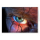 Macro close-up foto van kwaadaardig uitziend oog/oogbal in gekraakt gezicht