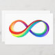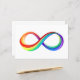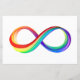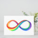 Helder symbool van oneindigheid uit kunststoflagen van rode, gele, groene, turquoise, blauwe en paarse verzadigde kleuren op witte achtergrond.