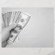Een handvol contanten geïsoleerd over een stevige achtergrond in zwart-wit. Pas dit geweldige product aan met uw eigen scannbare QR-streepjescodetekst, monogram, logo, bedrijfsslogan of persoonlijk bericht! (klik hierboven op de oranje knop "Aanpassen!")