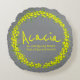Gouache en waterverf gele wattle acacia flower met een gepersonaliseerde meiden kussen. Personaliseer met uw eigen naam en naam betekenis op de voorkant van de kussen. Op dit moment leest Acacia An intriguing flower. vol vreugde en schoonheid. © Origineel schilderij en design door Sarah Trett voor www.mylittleeden.com