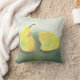 Gele en groene peren tegen een groen bos en een grijsgroene achtergrond. Nog steeds het leven in oliepastel.