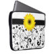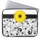 Gele Gerbera Daisy op zwarte en witte scroller Laptop Sleeve