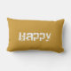 Bij gelukkig geel en wit inspirerende typografie omkeerbare kussen heeft een bij op de ene kant het woord gelukkig op de andere kant