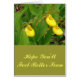 Fotografische bloemenbriefkaart, blanco binnen, met voorfoto van gele dame slipper bloemen die lijken op sierlijke kleine balletpantoffels, linten en alles! TEKST OP DE VOORKANT: "HOOP DAT JE JE SNEL BETER VOELT" () BLANCO BINNENKANT VOOR JE EIGEN BERICHT.