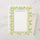 Letterkop, ontworpen met gele citroenen en groene bladeren, in een repetitief patroon. Gelaagd over bovenkant is een wit lijst voor gemakkelijk leesbaar schrijven. Personaliseer met een naam en een adres of een andere tekst.