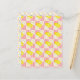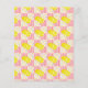 Gele leemten met roze strepen en blauwgroen, oranje, roze gele cirkelkwadraten. Omkeert naar blauwgroen, gele, roze, oranje cirkels en stippen.