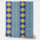 Elegante mix van blauwe en gele Marokkaanse vormen en blauwe strepen Dit ontwerp is een unieke kijk op Marokkaanse vormen Afwisselende blauwe strepen zijn kalmerender en minder "druk" dan het gebruik van Marokkaanse vormen alleen