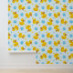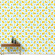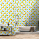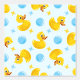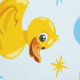 Gele rubberen eendjes op blauw met blauwe bubbels behang