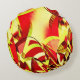 Gele strepen op rood, geboord afbeelding rond kussen