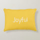 Een gele accentkussen shows een witte scripted tekst resulterend in een bevestiging voor Joyful. Het stevige geel-gekleurde kussen staat het aanpassen van de vullingskleur evenals de manuscripttekst, de doopvont, de doopvontgrootte, en manuscriptkleur toe. Het is een prachtig idee om een vriend een bevestigende kussen te geven. Voor hulp of vragen over aangepast ontwerp kunt u contact met ons opnemen op https://t.me/kbmd3signs_chat.