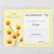 Een stijlvolle prijs voor een moderne klasse met een schattige gele Billy Button Australische bloemenflorale waterverf geel afbeelding, perfect voor het stimuleren van een jonge kunststudent. Je kunt in je eigen details schrijven. Een geweldige bron voor elk type klaslokaalleraar.