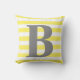 KLIK DE OPTIE VAN DE SJABLOON VAN DE PERSONALISEER EN GA MONOGRAM LETTERCklantgerichte gele achtergrond met witte strepen op beide kanten van de kussen in. Groot monogram initiaal in grijs gecentreerd op voorzijde.